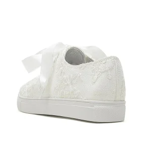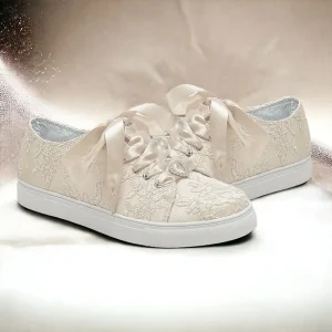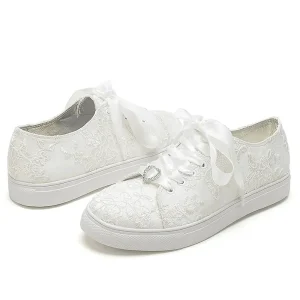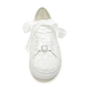 Bridal Lace Wedding Sneakers – Elegant Ivory Low-Top Sneakers with Satin Ribbon Laces and Rhinestone Detail for Brides and Special Occasions #9740726