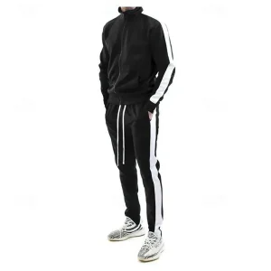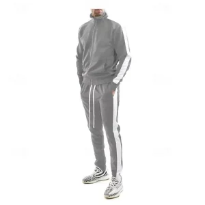 1.Gender: Men’s2.Occasion: Casual Athleisure3.Season: Fall4.Elasticity: Micro-elastic5.Sleeve Length: Long Sleeve6.Design: 2 Piece Full Zip7.Pattern: Color Block